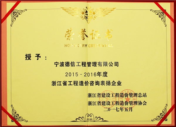 2015-2016年度浙江省工程造价咨询表扬企业