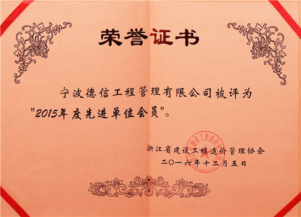 2015年度浙江省先进单位会员