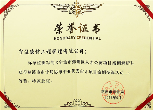 2016年度慈溪市审计局协审中介优秀审计项目案例二等奖