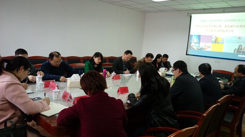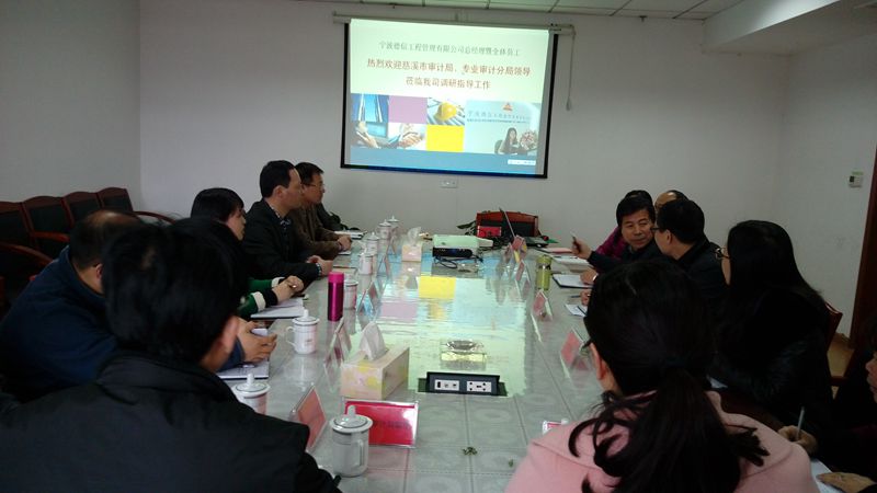 2016年3月17日下午,慈溪市审计局副局长杨锋辉、审计分局局长黄君央等一行8人,来我司考察指导。公司总经理李才方陪同来访领导参观了公司各部门,随后与公司管理层在大会议室进行交流会谈。李总首先代表公司全体员工向杨局一行的到来表示欢迎,公司副总经理向来宾介绍了公司的基本情况及管理措施、质量体系。整个交流会气氛热烈,大家对我司的培训机制、材料市场调查、档案检查等方面表现出了浓厚的兴趣,表示要学习和借鉴我们好的工作经验,在今后的工作中,遇到问题及时沟通探讨,把审计工作做得更加规范。