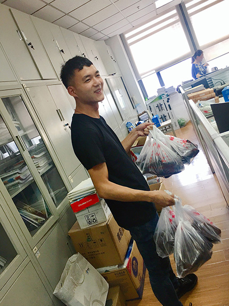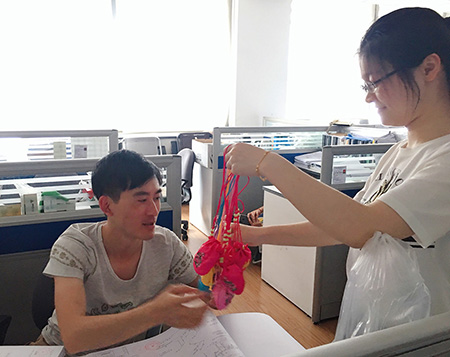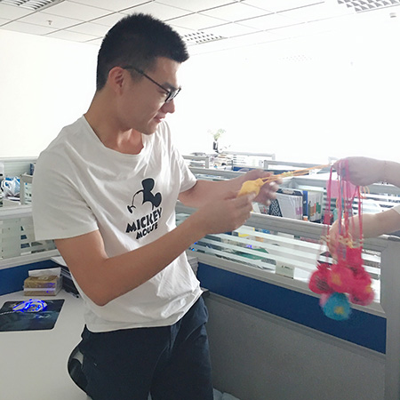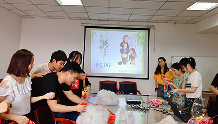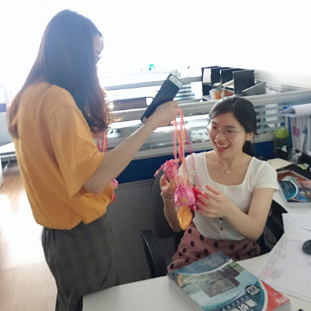 有些同事因工作原因不能到现场参加活动,该部门的同事为他制作了专属香包,小小的香包承载着浓浓的同事情。