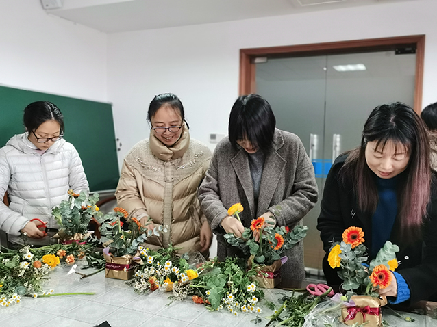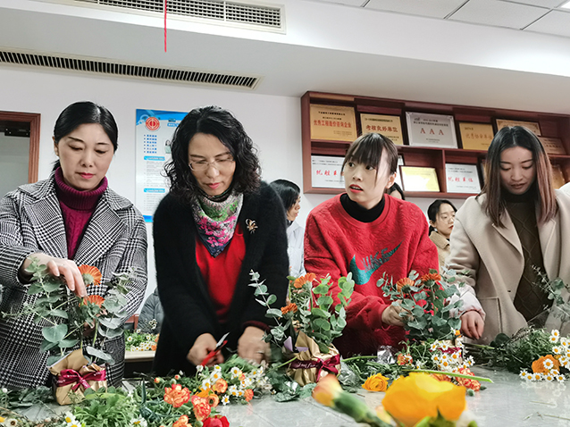 活动在轻松愉快的氛围中展开,女职工们在花艺老师的讲解下,结合各自手中的花材特点和审美情趣,从鲜花的取材、剪叶、构图、布局开始,不断的进行尝试和实践,忙得不亦乐乎。经过半个多小时的亲手实践,一朵朵姹紫嫣红的花朵在纤纤素指下尽情舒展着自己柔媚的腰肢,变身成一盆盆错落有致、生机盎然、创意十足的插花作品,令人赏心悦目。欣赏着通过自己双手亲自制作出来的作品,大家的脸上洋溢着喜悦欢快的笑容与花朵相互交融。对每个人来说,每个花篮都是那么珍贵,那么与众不同,这也是给自己最好的节日礼物。