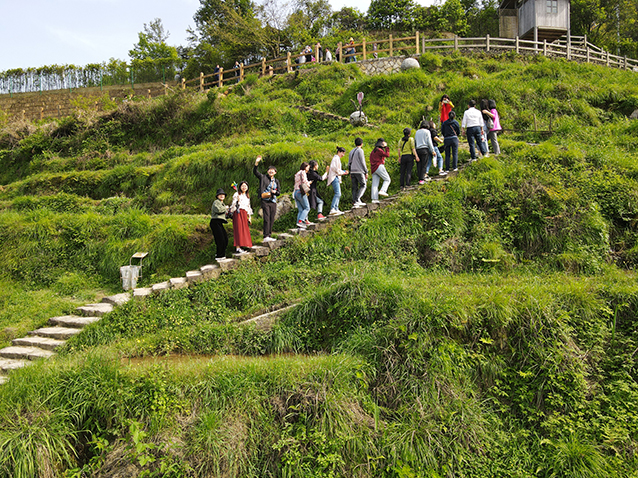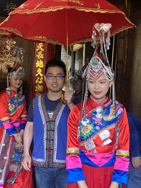 在云和梯田,我们钦佩于古人的勤劳聪慧。相传,云和梯田已有千年历史,由闽北迁徙浙南的畲族山民最早垦殖。聪明的农人先祖,用锄头镰刀和汗水,伐去山上的灌木与荆棘,挖去乱石拣尽杂砾,在高低起落的坡地上,经年累月日复一日,开垦出一小片一小片不规则的田地依山势上下伸展。如今的梯田,田埂棱角分明,梯级层次清晰,如同一部刻录着中国千年农耕文明成果及非物质文化遗产的立体史册。在欣赏了最美梯田后,走进畲族村落体验风土人情,经历一场别具风格的畲族婚礼,有同事一不小心就“娶”了。