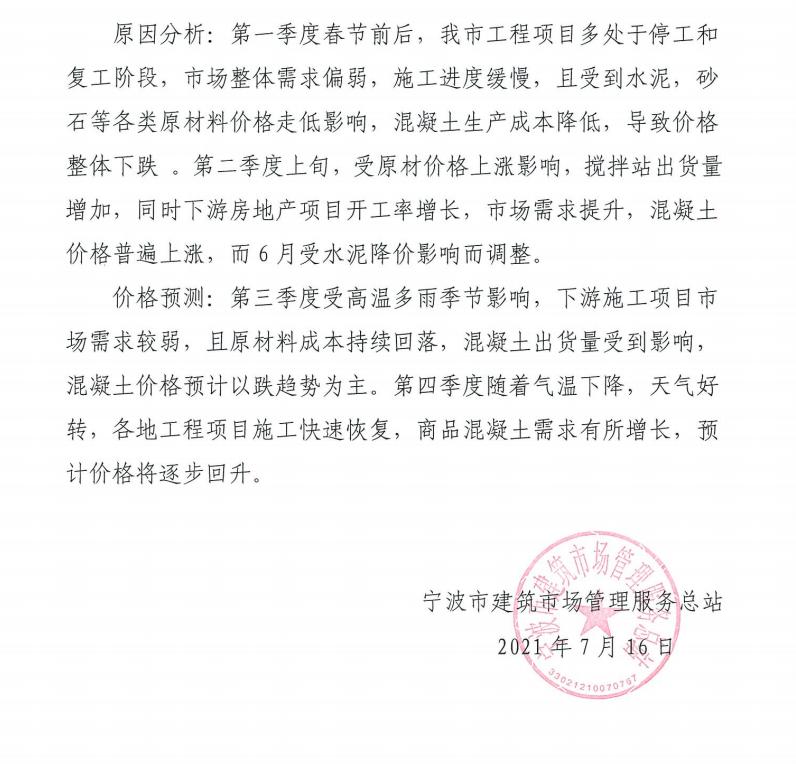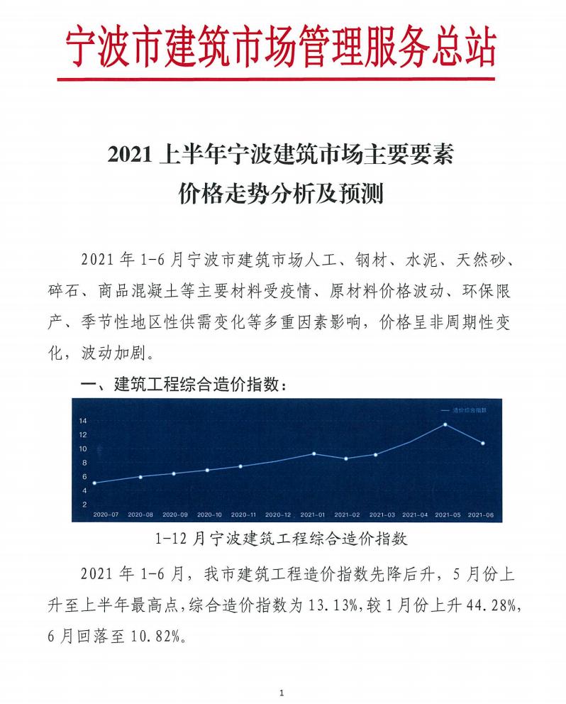 2021上半年宁波建筑市场主要要素价格走势分析及预测