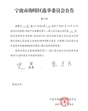 近日,宁波德信工程管理有限公司总经理李才方先生成功高票当选为宁波市海曙区第十二届人民代表大会代表。