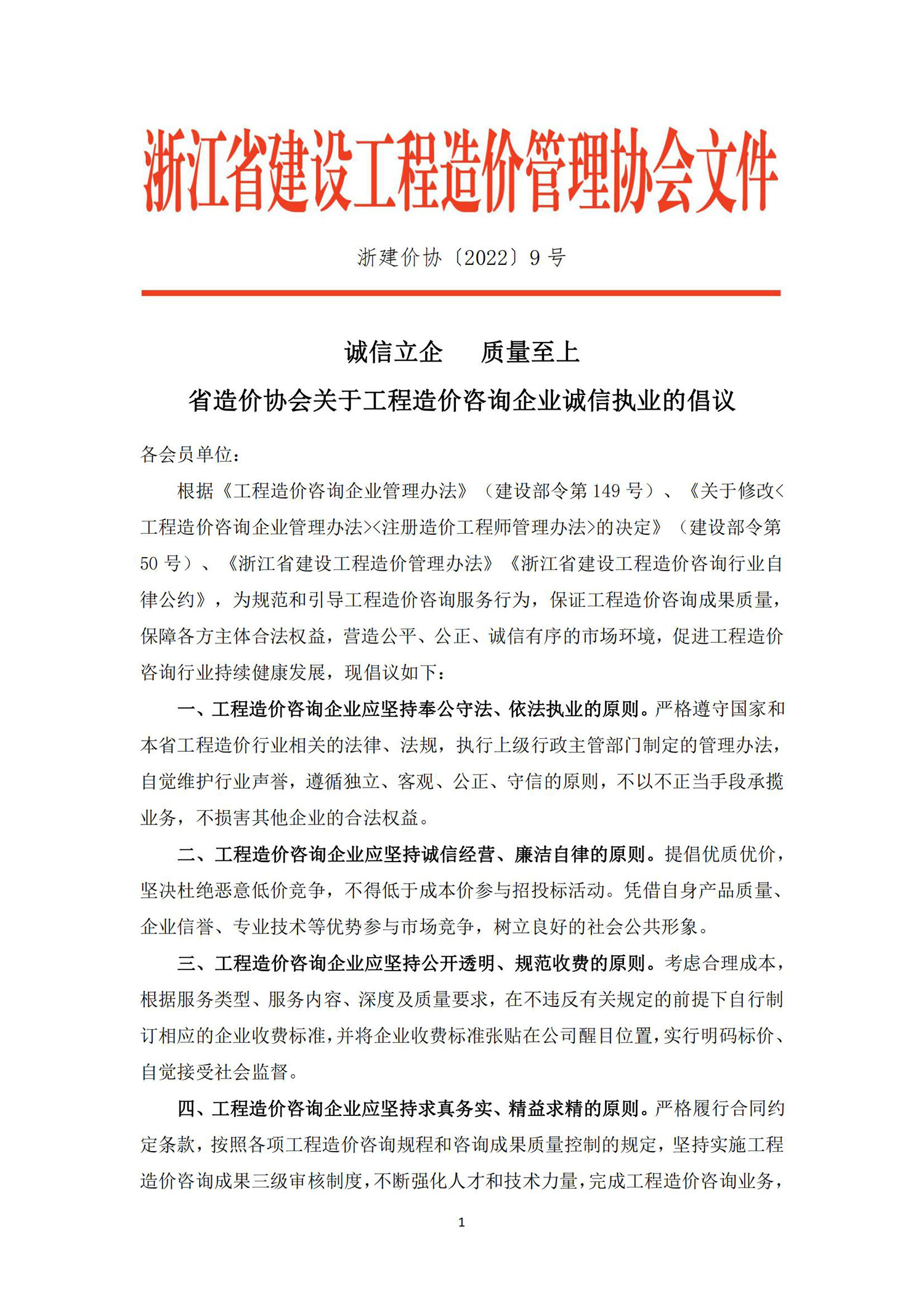 省造价协会关于工程造价咨询企业诚信执业的倡议