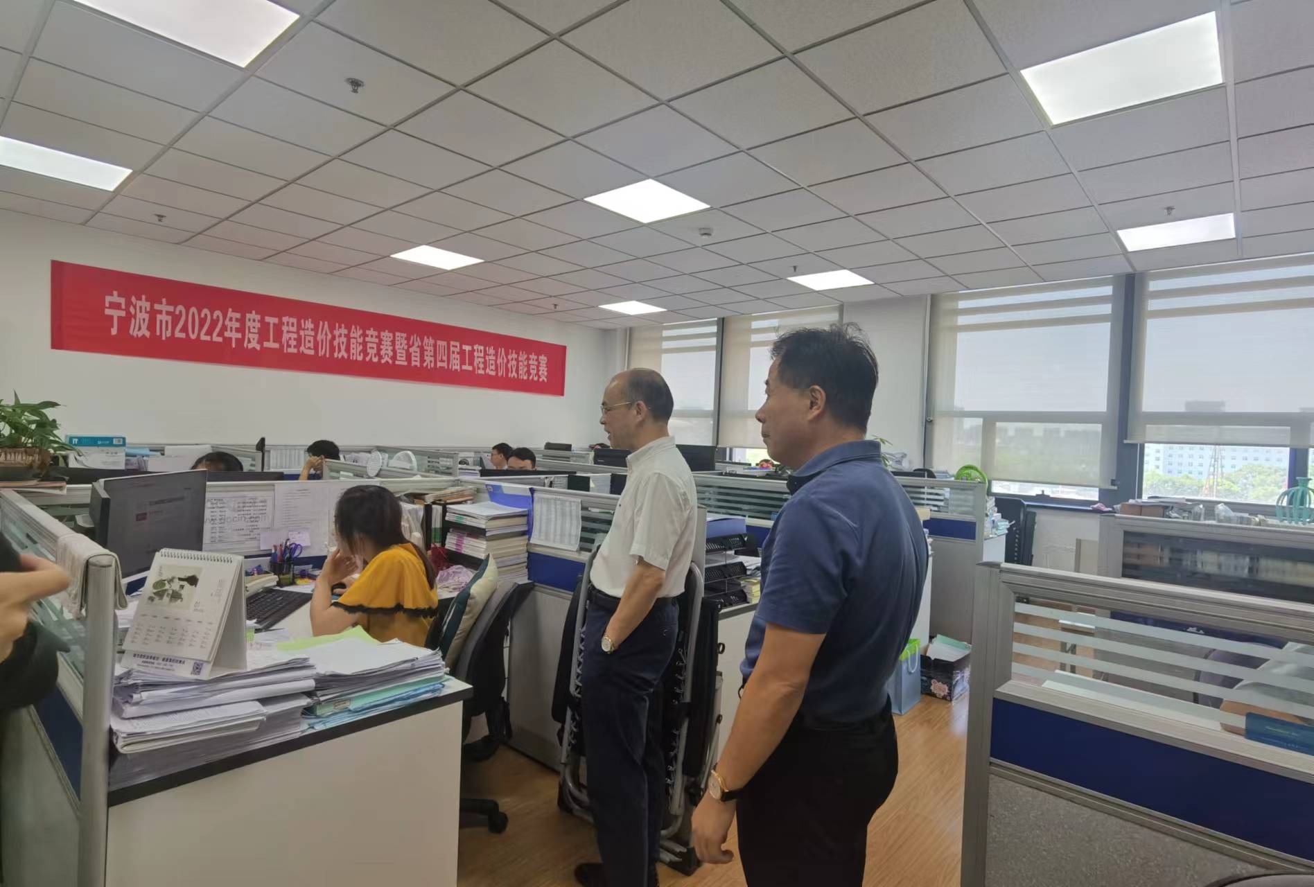 2022年8月15日上午,宁波市建筑市场管理总站(市造价管理总站)党总支副书记(正处级)傅立群、宁波市建设工程造价管理协会副会长、秘书长任菡青来到宁波德信工程管理有限公司参赛现场,为参赛选手现场助威。总站副书记(正处级)傅立群在比赛开始前,鼓励选手们赛出风格,赛出水平。随着比赛开始,现场选手们心无旁骛,认真答题,现场气氛紧张有序。